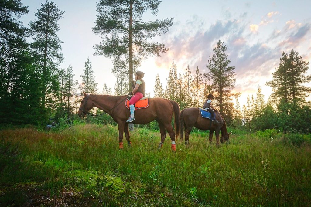 Maastotuntiin sisältyy selkäännousu sekä ohjeistus ratsastuskentällä ja tarvittaessa myös retken aikana. Maastossa etenemme asiakkaiden taitojen ja toiveiden mukaisesti turvallisuus edellä.