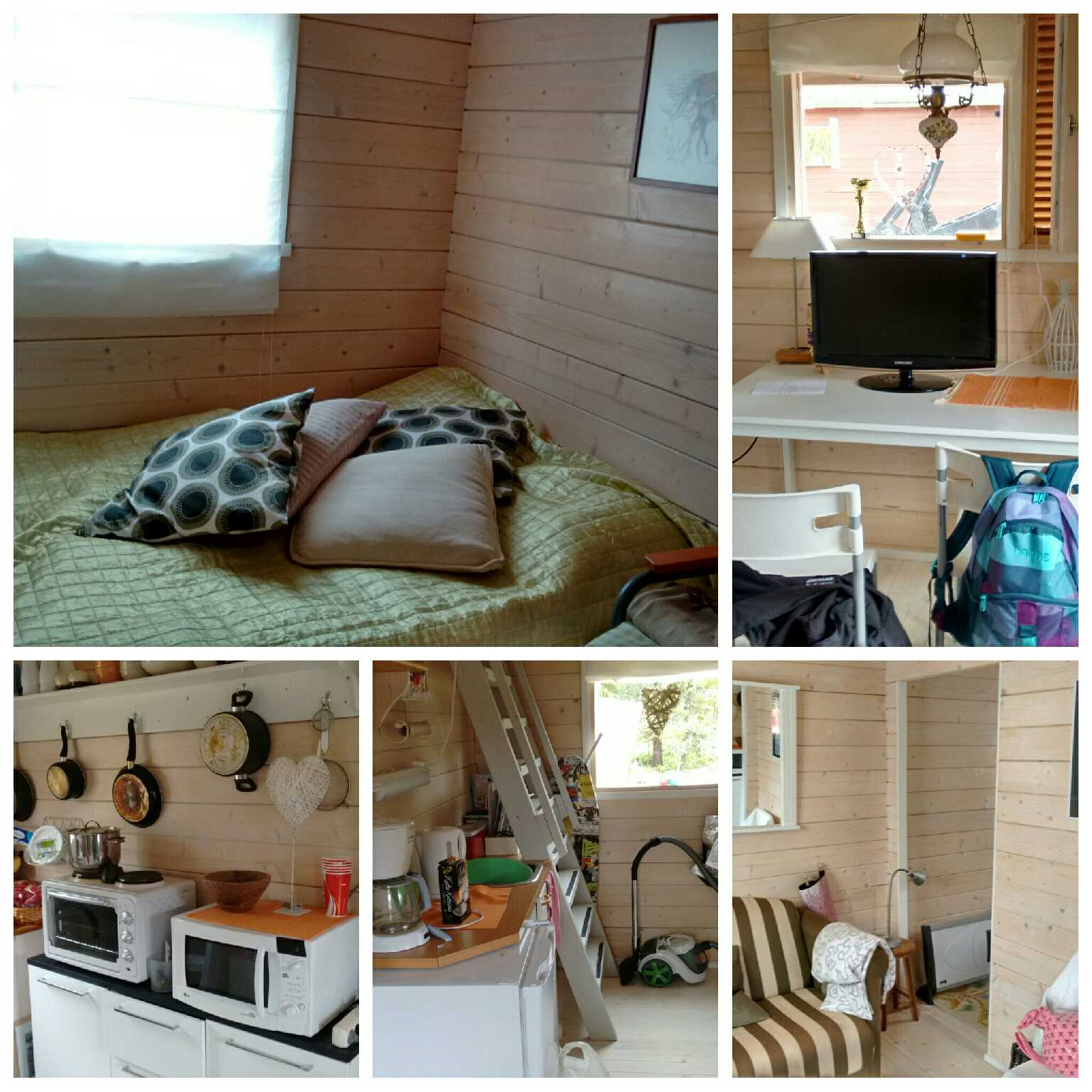 Mökkiin mahtuu nukkumaan noin 6-8 henkilöä. Alakerrasta löytyy yhtenäinen tila, jossa on olohuone, keittiö ja erillinen pieni makuuhuone. Ylhäällä on makuuparvi.