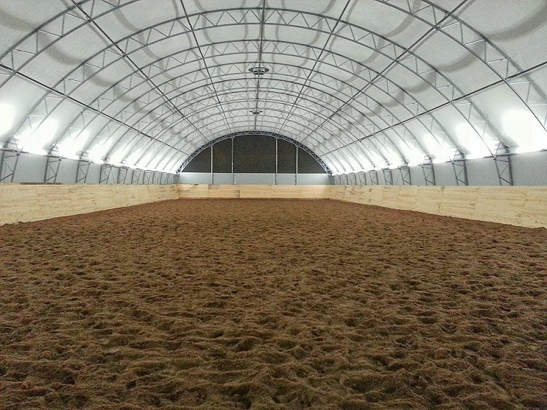 Maneesi on valmistunut v. 2014 ja on 20 x 57m kokoinen. Tunneillamme mahtuu siis hyvin ratsastamaan useampi ratsukko. Maneesin toinen pääty muodostuu verkkokankaasta, jonka avulla sisälle pääsee mahdollisimman paljon luonnonvaloa. Maneesissamme on siis mukava ratsastaa päivälläkin.